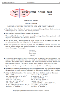 2013年USAPhO真题 2013 Semifinal Exam 由于篇幅限制,以上仅展示部分 如需全部真题,请扫码领取⇓ F=MA新赛季备赛已开启,扫码领取F=MA历年真题&答案 欢迎咨询F=MA竞赛辅导课程及备赛规划,专业名师为您解答! 微信在线客服