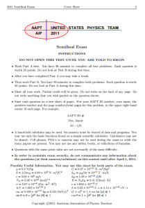 2011年USAPhO物理竞赛真题 2011年USAPhO物理竞赛真题部分展示⇓ 由于篇幅限制,以上仅展示部分 如需全部真题,请扫码领取⇓ F=MA新赛季备赛已开启,扫码领取F=MA历年真题&答案 欢迎咨询F=MA竞赛辅导课程及备赛规划,专业名师为您解答! 微信在线客服